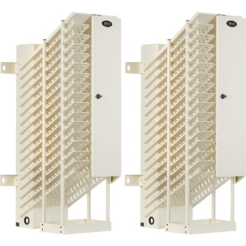 Space-Saving Charging Stations Accommodate up to 32 Chromebooks and Tablets The CST32AC consists of two CST16AC 16-device charging towers. These wall-anchored, floor-standing 120V charging stations provide high-speed AC charging, secure storage and cord management for as many as 32 Chromebooks, tablets and other mobile devices with a screen size up to 16 inches. These towers are recommended for schools, small/medium businesses, medical facilities, government agencies and anywhere else that uses Chromebooks or tablets on a daily basis. Space-Saving Form Factor Ideal for Mounting in Busy Classrooms Designed to fit into classrooms and other areas with limited floor space, the two CST16AC units each feature a space-saving footprint of less than two square feet, perfect for small or crowded rooms. They attach to the wall with the included mounting brackets. They anchor to the wall at floor level, which allows access to younger children who need to charge their devices at school. Open Frame Design Allows Convenient Visibility without Unlocking the Door An innovative open frame design allows you to see devices without unlocking and opening the half door in front. When checking at the end of the day to see whether all the Chromebooks or tablets have been returned, you can just glance at the charging stations from across the room for quick confirmation. The open sides allow cool air to easily flow through each tower, enhancing the performance of your devices and extending their life. High-Speed Charging with Plenty of Power to Keep Every Device at Full Capacity Both charging towers come with a 20-outlet PDU already installed, giving you a dedicated NEMA 5-15R receptacle for every power adapter, along with eight extra. Each tower has a charging capacity of 1440 watts, enough to charge all Chromebooks. Locking Steel Enclosure Keeps Valuable Equipment Safe and Secure Constructed from heavy-duty steel covered with a white powder-coated finish, this charging tower provides safe, secure storage. Devices and their power adapters are stored in separate compartments. The front door and top panel both lock with included keys to help prevent theft, damage and tampering. Strategically placed bars down the sides prevent anyone from sliding a Chromebook out of the locked tower. The top panel allows access to the upper outlets and power adapters. A 15-amp circuit breaker protects the devices against overloads. Well-Organized to Avoid Confusing Cable Clutter The CST32AC is compatible with a wide array of mobile devices, including Chromebooks, iPads, Android tablets, Surface tablets, Kindle e-readers and other mobile devices with screen sizes up to 16 inches. Power cords are routed through cable management slots to keep them organized and prevent tangles. Each shelf comes with a numbered sticker for easy identification and is specially coated to help prevent device scratches and scuffs. The towers'' 10-foot cords with NEMA 5-15P plugs allow great flexibility in placing the units near an AC wall outlet. Secure the Towers to a Wall or Move Your Devices from Room to Room Mount the charging stations on a wall with the included brackets and user-supplied hardware. If you prefer the flexibility to roll the towers from one room to another, an optional caster kit (CSTCASTERKIT16, sold separately) includes four casters, mounting platform, handles and a locking rear door.
