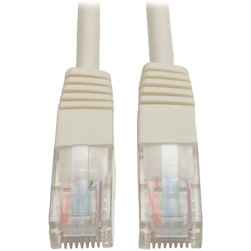 Tripp Lite''s 6-ft. White category 5e (Cat5e) patch cable has 2 standard RJ45 molded male connectors featuring integral strain relief. The cable is manufactured from PVC 4-pair stranded UTP and is rated for 350MHz/1Gbps communication. All cables are offered in a variety of lengths and colors for all category 5 (Cat5) and 5e cabling needs. Snagless category 5e patch cables are also available (N001-Series).