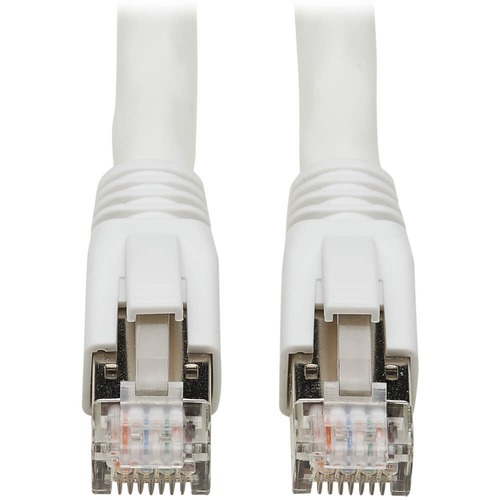 Shielded Cat8 cable connects 25G/40G equipment, such as webcams and VoIP phones, in your highspeed 40GBase-T network.Features High-Speed Cat8 F/STP Patch Cable Up to 4 Times Faster Than Cat6a This certified Cat8 cable transmits 40 Gbps data, voice and audio/video through high-speed 40G equipment, including network switches, modems, routers, adapters, hubs and patch panels. Not only is the 40 Gbps data transfer speed four times that of Cat6a cable, but this Cat8 cable supports bandwidth up to 2 GHz (2000 MHz) for carrying information and streaming video with no lag.Supports Power over Ethernet (PoE) to Cut Down on Power Supplies Because this Cat8 shielded cable supports PoE, it can supply the power to operate compatible PoE devices, such as security cameras, VoIP telephones, point-of-sale kiosks and access control devices. This saves you the expense and effort of purchasing, connecting and installing individual power supplies for each device. You can also install PoE devices in locations distant from power outlets, such as high on walls, ceilings or poles.Premium Protection from EMI/RFI Line Noise Helps Your Equipment Perform Better EMI (electromagnetic interference) and RFI (radio frequency interference) line noise is a common cause of performance problems. The 22 AWG S/FTP (shielded foiled twisted pair) cable''s foil shielding blocks disruptive line noise that can disturb your electronics and inflict hardware damage or data loss. This EMI/RFI filtering also helps your connected components perform better and last longer. Near-end crosstalk (NEXT) levels are practically eliminated, so you don''t have to worry about keeping your cables separated in crowded pathways or spend valuable time on field testing.Snagless RJ45 Male Connectors Add Extra Protection During Installation The RJ45 connectors'' snagless design protects the locking tabs from being damaged or broken off during installation. Integral strain relief provides extra flexibility, reduces stress, and helps the cable move freely without cracking or breaking loose from the connector.Color-Coded to Avoid Misidentification That Can Cause Costly Downtime This Cat8 patch cable features a durable white PVC jacket. The color-coding allows easy, fast identification in a crowded rack, patch panel or workstation, preventing the cable from becoming accidentally disconnected.