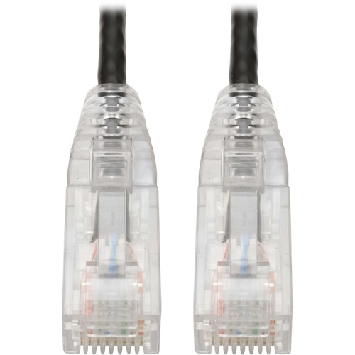 Features Cat6 UTP Patch Cable Ideal for Your Gigabit Ethernet Network This Cat6 UTP cable with RJ45 connectors is recommended for connecting network components like printers, computers, copiers, routers, servers, modems and switches in high-density data centers. Designed for fast transmission and excellent signal quality, this eight-inch black cable ensures peak performance throughout your local area network (LAN). Special Slim Design for Better Airflow and Easier Installation This Cat6 UTP patch cord is more than 38% smaller in diameter than standard Cat6 cable. This increases airflow in tight spaces, which helps keep your equipment cool and properly functioning. It also makes the cable easier to install around corners and through cable management panels. Snagless RJ45 Male Connectors Add Extra Protection The RJ45 connectors'' snagless design protects the locking tabs from being damaged or broken off during installation. Color-Coded to Avoid Misidentification That Can Cause Costly Downtime This Cat6 UTP patch cable features a black PVC jacket. The color-coding allows easy, fast identification in a crowded rack or workstation and helps prevent the cable from becoming inadvertently disconnected. Premium Construction for Superior Performance Manufactured from 28 AWG copper wire, the four-pair stranded cable is rated for speeds up to 1 Gbps. The ends feature 50-micron gold plating to help ensure the most accurate signal transfer possible. Integral strain relief gives the unshielded cable extra flexibility, reduces stress, and helps the cable move freely without cracking or breaking loose from the connector. Typical Applications Connect a computer and its peripherals to a home or office Gigabit Ethernet network Connect switches, modems and servers in a high-density data center Replace standard-diameter cables in crowded patch panel installations to improve airflow