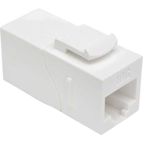 Strengthen your high-speed network with Tripp Lite''s N235-001-WH-6AD Cat6a Straight-Through Modular In-Line Snap-In Coupler(F/F). This white coupler connects two Cat6a patch cords to create one longer cable. Its keystone design is perfect for convenient feed-through patching when used with a standard data wallplate(such as Tripp Lite''s N042-001-WH). One RJ45 port is angled down at a 90-degree angle for easy installation in hard-to-reach spaces. Built for ultra-fast performance, this is an ideal coupler when setting up premise wiring, telecommunications, data networking and Ethernet connections. Compatible with all Cat6a cables, the N235-001-WH-6AD''s durable scratch-resistant polycarbonate housing is colored white to blend into any color scheme. This coupler features straight-through wiring and 50-µinch gold-plated contacts designed to resist corrosion. The N235-001-WH-6AD is UL-listed and meets all requirements for EIA/TIA Category 6A compliance. It''s also backward compatible with Cat6, Cat5e and Cat5 LANs.