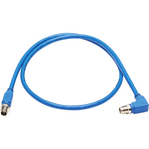 Cat6a M12 Cable Recommended for Industrial and Other Harsh EnvironmentsThis M12 X-Code cable connects 10 GbE networks in wet/humid environments, places subject to vibration and other areas where protection from harsh elements is essential, such as factories, warehouses, recycling plants, airports, railways and machine shops. The circular M12 connectors with 12-millimeter locking thread are especially designed for washdown and corrosive applications, including agriculture, alternative energy, communications, factory automation, measurement and control, robotics, transportation and food/beverage facilities. IP68 Rating Denotes Resistance to Dust and WaterThe IP68 rating means the M12 cable is not only 100% protected against dust, but also able to endure immersion in 1.5 meters of water for up to 60 minutes with no damage or decline in performance. Supports Power over Ethernet to Save You Money and Give You More Installation ChoicesBecause this Cat6a cable supports high-power 60W PoE, it can supply the power to operate compatible data, voice, security and audio/video PoE devices, such as surveillance cameras, VoIP telephones and access control devices. This saves you the expense and effort of purchasing, connecting and installing individual power supplies for each device, as well as installing separate power and data cables. It also helps you install PoE devices in areas far away from AC outlets, such as poles or ceilings. CMR-LP Certified for Cable Installations with Increased Power LevelsUL''s Limited Power (LP) certification indicates the NM12-6A3-02M-BL has been evaluated to handle the marked current under installation scenarios without exceeding the temperature rating of the cable. This CMR-LP-certified cable provides a simple way to prepare installations for increased power levels without having to worry about susceptible issues caused by excessive heat. Right-Angle Plug Makes Connecting in Tight Spaces EasierOne M12 connector is designed at a space-saving right angle, making it easy to install in confined spaces, such as a crowded equipment rack or a network device located flush against a wall. The right-angle construction also relieves strain on the cable and connector and prevents the cable from bending awkwardly. Colored Blue to Avoid Misidentification That Can Cause Costly DowntimeThis Cat6a F/UTP copper cable features a blue PVC jacket that allows easy, fast identification in field devices, controllers and switches and helps prevent the cable from becoming inadvertently disconnected.