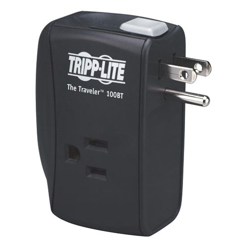 Tripp Lite''s portable TRAVELER100BT surge suppressor offers complete AC and Ethernet or phone line surge suppression for laptops, electronic notepads, personal organizers and other portable electronic devices. Compact portable housing weighing less than 4 ounces neatly fits into laptop travel cases. Retractable plug prevents scratching of expensive portable electronics. Set of RJ45 Ethernet or telephone line suppression jacks protect network lines or dialup and DSL modem lines. TRAVELER100BT offers 2 total outlets in a space saving direct plug-in format and diagnostic LEDs to warn of wiring problems and suppressor damage. $50,000 Ultimate Lifetime Insurance (USA & Canada Only).