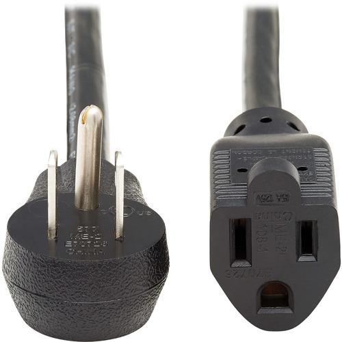 3-Foot Extension Cord Connects PCs, Printers, Monitors and Other Equipment This cord is recommended for home/office desktop computer applications, home theater setups or other applications where multiple devices are plugged into a surge protector, PDU or UPS system. It allows you to connect bulky power adapters to a NEMA 5-15R outlet without blocking adjacent outlets. It''s also an excellent replacement for a lost or worn-out extension cord. The three-foot length helps reduce cable clutter and minimize the risk of tripping. Right-Angle Plug Makes Connecting in Tight Spaces Easier The space-saving right-angle NEMA 5-15P connector is easy to install in confined spaces, such as behind your computer desk or workstation. The right-angle construction also relieves strain on the cable and connector and prevents the cable from bending awkwardly.