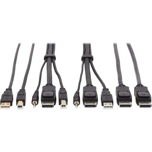 Tripp Lite P783-010-DPU KVM Cable - 10 ft KVM Cable for KVM Switch, Computer, Monitor - First End: 1 x Mini-phone Male Audio, First End: 1 x DisplayPort Male Digital Audio/Video, First End: 1 x Type A Male USB - Second End: 1 x Mini-phone Male Audio, Second End: 1 x DisplayPort Male Digital Audio/Video, Second End: 1 x Type B Male USB - 60 MB/s - Supports up to 3840 x 2160 - Black
