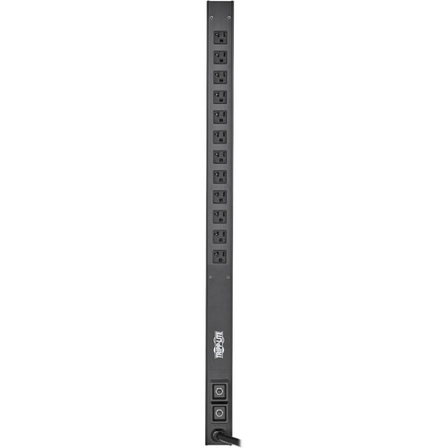Single-Phase 120V PDU Distributes Network-Grade Power to Multiple LoadsThis basic PDU is an ideal no-frills unit for networking, telecom, security, audio/video and sound reinforcement applications. Recommended for data centers, computer rooms and network closets, the PDUV30-36 features two breakered load banks, each with six 5-15/20R outlets for connecting equipment. A 10-foot cord with NEMA L5-30P input plug connects to your facility''s AC power source, generator or protected UPS system to distribute power to connected loads. Up-to-Date Safety Features Protect Your Vital Equipment The switchless design helps prevent an accidental shutdown, which could lead to costly downtime. Dual 20A circuit breakers protect connected components from dangerous overloads. Versatile Installation Options Give You Plenty of ChoicesThe 36-inch 0U PDU mounts vertically in an EIA-standard 19-inch rack using the included toolless mounting buttons or the included mounting brackets with user-supplied hardware. You may also use the brackets to secure the PDU to the underside of a counter with the addition of two user-supplied screws. Bolt-down retention brackets keep power cords organized and your rack free of clutter. Typical Applications Deliver network-grade power to high-density equipment in networking, telecom, security, audio/video and sound reinforcement applications