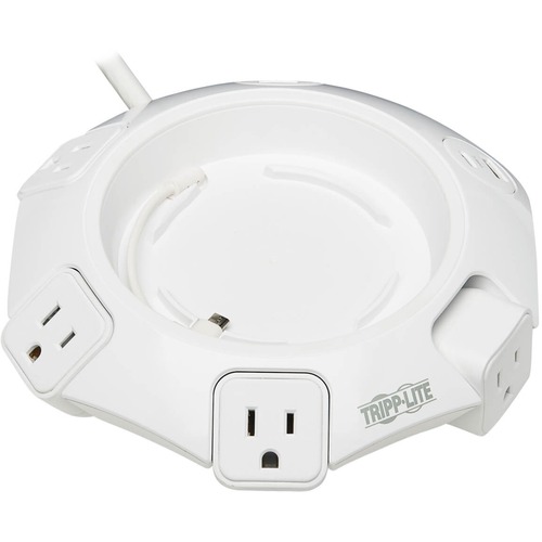 Keep Your Team''s Devices Powered and Charged During Important Meetings Workplace meetings involve a variety of devices - laptops, smartphones, tablets - to keep everyone coordinated and up to date with the information necessary to make important decisions. Guaranteeing those devices remain charged and powered is Tripp Lite''s Conference Power Surge Protector. Rounded to ensure equal access to everyone at the table, this UL-certified surge protector delivers ample power and reliable protection to as many as eight mobile devices at the same time. NEMA 5-15R Outlets Accept a Wide Range of Electronic Devices Plug your laptops, projector, printer or other conference-table electronics into four NEMA 5-15R outlets to protect them against dangerous surges, spikes and line noise. Each rotating outlet is located far enough apart from the others to accept bulky transformers without blocking adjacent outlets. 4 USB Ports Share 4.8 Amps of Charging Power One USB-C and three USB-A ports are available for charging your smartphones, tablets and other USB mobile devices. They share 4.8A of charging power, which is plenty for delivering ample power to demanding devices. Keeps Your Smart Speaker Fully Powered and at Your Disposal A center device cradle is specially designed to fit an Amazon Echo Dot, Google Nest Mini or other smart speaker that allows access to instant information, external team members or just a little light thinking music. A built-in Micro-USB cable keeps the speaker powered. 1080 Joules Safeguard Your Sensitive Electronics This Protect It!® surge protector features a surge suppression rating of 1080 joules to defend your sensitive electronic components against even the strongest power surges and spikes. Because residential power outlets have three wires-hot line (H), neutral (N) and ground (G)-the TLP48USBCUFO protects all three, covering the two protection modes: full normal mode (H-N) and common mode (N-G/H-G). Premium Protection from EMI/RFI Line Noise Helps Your Equipment Perform Better Various electromagnetic and radio sources found in virtually every home and business can cause disruptive interference on the AC line. Known as EMI (electromagnetic interference) and RFI (radio frequency interference), this line noise is a common cause of performance problems. This surge protector filters out disruptive line noise that can disturb your electronics and inflict hardware damage or data loss. This EMI/RFI filtering also helps your connected components perform better and last longer. Premium Safety Features Protect Your Valuable Equipment The on/off switch provides one-touch control over all connected equipment. Automatic shutoff permanently cuts power to outlets if protection circuit is incapacitated, preventing equipment damage and indicating replacement is required. A green LED confirms your connected equipment is protected. Versatile Surge Protector Provides Flexible Installation Options An eight-foot cord with NEMA 5-15P plug is long enough to give you plenty of options for placing the unit away from a wall outlet.