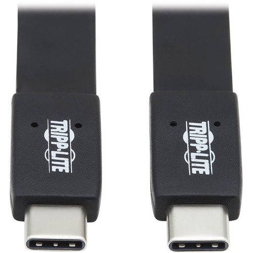 Flat USB-C Cable Transfers Data and Charges Devices at Lightning-Fast USB 3.1 Gen 2 Speeds This USB sync/charge cable (M/M) connects your smartphone, tablet, MacBook Pro, Windows laptop or other USB-C device to the USB-C port on a computer, docking station or wall charger. It supports USB 3.1 Gen 2 data transfer rates up to 10 Gbps, which is twice as fast as USB 3.1 Gen 1. It also provides power output up to 2.3 amps (46 watts), which is sufficient for charging and powering most mobile devices. Innovative Flat Cable Prevents Tangles, Allows Flexible Bends Very flexible for convenient on-the-go connections, this flat cable avoids nasty tangles in your backpack or laptop bag. Its advanced flat design allows easy rolling for tangle-free storage. Plus, it bends easily for connecting to devices in tight spaces or around obstacles. Reversible USB-C Connectors Attach in Either Direction Unlike traditional USB cables that connect in only one direction, the reversible USB-C male connectors plug into a USB-C or Thunderbolt 3 port in either direction for an instant connection every time.