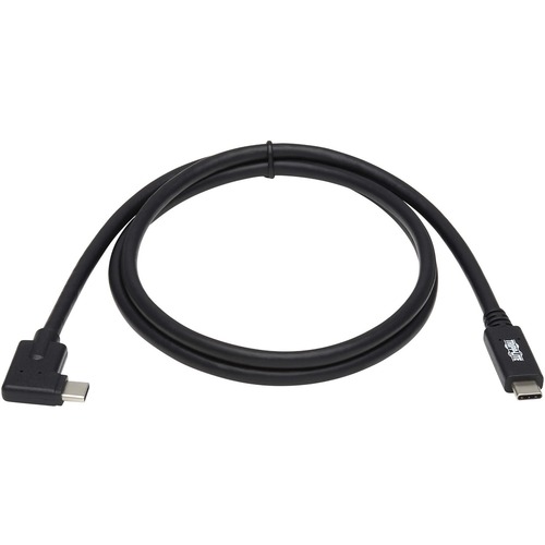USB-C Cable Connects Devices for Charging or Transferring Data at 10 Gbps SpeedsThis USB cable (M/M) is compatible with any device with a USB-C or Thunderbolt 3 port, including MacBook Pros, Chromebooks and Windows laptops. It allows you to connect your notebook computer to a docking station, your Apple or Android smartphone to a wall charger or power bank, or an external hard drive to a PC or tablet, to name just a few valuable uses for the cable. It supports USB 3.2 Gen 2 data transfer speeds up to 10 Gbps, which is twice as fast as USB 3.2 Gen 1. PD Charging Cable Supports up to 100W for Syncing and Charging Mobile DevicesThe Power Delivery cable provides power output up to 20V 5A (100W), which is sufficient for fast-charging, syncing and powering most large-capacity devices, including the MacBook Pro. Right-Angle Plug Makes Connecting in Tight Spaces EasierA space-saving right-angle USB-C connector is easy to install in confined spaces, such as behind your computer or workstation. The right-angle construction also helps relieve strain on the cable and connector and prevents the cable from bending awkwardly. Reversible USB-C Connectors Attach in Either DirectionUnlike traditional USB cables that connect in only one direction, the reversible USB-C male connectors plug into a USB-C or Thunderbolt 3 port in either direction for an instant connection every time.