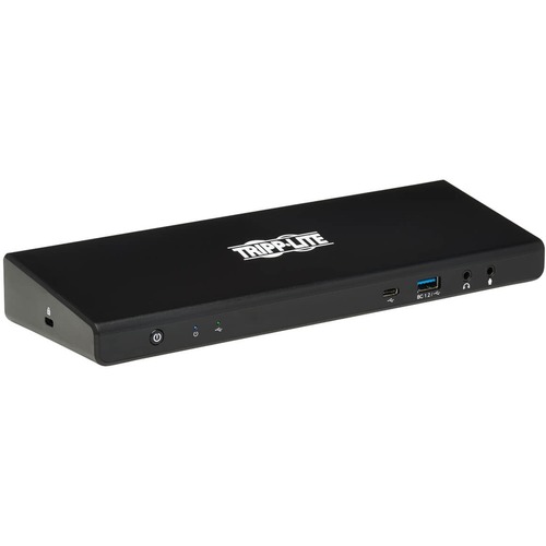 SB-C Docking Station Turns Your Device''s USB or Thunderbolt 3 Port into 14 New Ports This universal USB-C dock with PD Charging expands the potential of your Windows laptop, Chromebook, smartphone or PC''s USB-A, USB-C or Thunderbolt 3 port. Connect the docking station using the included USB-C cable, and add 14 ports to your device: (2) 4K HDMI (2) 4K DisplayPort RJ45 Gigabit Ethernet (4) USB 3.0 USB 3.0 with BC 1.2 USB-C PD Charging USB-C data (2) 3.5 mm stereo Transmits Crystal-Clear True 5K/4K Video and Digital Audio with 4:4:4 Color The HDMI and DisplayPort (DP) outputs support true 4K resolutions up to 4096 x 2160 at 60 Hz with 4:4:4 chroma subsampling for top-level PC gaming or using your HDTV as a PC monitor. When both DP outputs are connected to one DP monitor, that monitor will support 5K video up to 5120 x 2880 at 60 Hz. DisplayLink Technology Allows Connection of Multiple Displays By downloading and installing the proper DisplayLink drivers to your host device, you may connect two external displays simultaneously. This allows you to display the image from the host computer on both monitors, extend your host desktop across both with different windows open on each, or combine all into one large display as a video wall. Connect multiple monitors (dual 4K @ 60 Hz DP; dual 4K @ 60 Hz HDMI; or 4K @ 60 Hz DP and 4K @ 60 Hz HDMI) in Extended and Mirror modes. Note: Mac OS laptops or computers will only extend to one monitor. The others will be mirrored. USB Hub Ports Connect Keyboards, Thumb Drives and Other Peripherals One USB-C and five USB-A ports accept USB peripherals, such as flash drives, mice, keyboards and printers. All support fast USB 3.2 Gen 1 data transfer rates up to 5 Gbps and are backward compatible with USB 2.0 and USB 1.1 devices. One USB-A port also supports BC 1.2 charging with 5V 1.5A (7.5W) of power dedicated to fast-charging your mobile device. PD Charging Port Charges the Connected Notebook, Tablet or Other Device Connect your host device to the USB-C Power Delivery port, which supports PD 2.0 charging of connected PD Charging-compliant devices, such as laptops, Kindles, iPads and Android smartphones, up to 20V 4.25A (85W). The included power supply, when plugged into an AC outlet, provides the charging power. Accesses a Wired Gigabit Ethernet Network The RJ45 port offers access to a Gigabit Ethernet network when Wi-Fi is unavailable or when a wired connection offers faster speeds. Connect using a UTP cable (sold separately), and enjoy true 10/100/1000 Mbps Ethernet speeds for fast data transfers. Connects Speakers, Microphone and Other Audio Equipment Two 3.5 mm mini stereo jacks are convenient for connecting speakers, headphones and/or a microphone to your workstation. You can listen to music or record the latest episode of your podcast. Anti-Theft Lock Protects the Docking Station When You Aren''t Around Connect a user-supplied computer/laptop security cable lock (not included) to this K-lock port to protect your source device against theft. Detachable USB-C Cable Connects in Either Direction Unlike traditional USB cables that connect in only one direction, the reversible USB-C male connector plugs into a USB-C or Thunderbolt 3 port in either direction for an instant connection every time. A USB-C to USB-A adapter is included for connecting the docking station to your host device''s USB-A port.