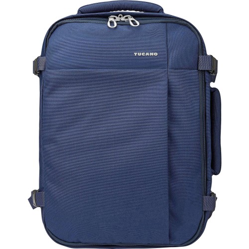 Tucano Milano Italy Tugo Medium is a durable travel backpack, designed to fit the maximum size of carry-on luggage allowed by airlines (IATA).Tugò M has two convenient front pockets that are ideal for storing travel accessories, and a padded rear compartment to protect a Notebook up to 15.6"; this allows for quick access to your laptop, which makes airport checks faster. The rear panel also features a strap for transportation via trolley as well as a security pocket, useful for concealing valuables and keeping them safe.The main compartment has a capacity of over 18 litres, and is perfect to store everything you need for a weekend away.The zipper pulls of the main compartment are also compatible with use of a padlock, so as to always be sure to protect its content.Included are 4 adjustable straps on the sides of the backpack, a chest strap and two sturdy handles to assist in placing the backpack in the overhead bins in planes and trains.