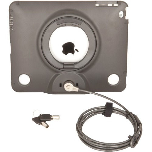 High Strengh shell for iPad generations 2 to New iPad.Stand function, several viewing angles available.All the connections of the iPad remain available.With anti-theft cable:Galavanised steel cable in dark smoke PVC coating.Push-to-lock locking function, tubular keyZinc alloyed security lock, user friendly system.Cable diameter : 4,4mmCable lenght: 2m
