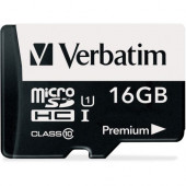 Verbatim 16GB Premium microSDHC Memory Card with Adapter, UHS-I Class 10 - Class 10 - 80MBps Read - ..