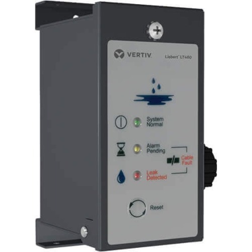 The Vertiv Liebert LT460-Z45 Leak Detection Sensors install quickly and work simply for reliable warning of potentially hazardous moisture conditions. The supervised zone leak detector uses up to 100 feet of flexible Liebert moisture sensing cable, offering protection from unwanted leaks. The Sensor provides zone protection using the easy-to-install and quick-drying Liebert leak detection cable. LEDs on the top cover provide visual indication. A reset button provides optional manual acknowledgement of alarms. The top cover is hinged, for easy access to the electronics inside the steel enclosure. Terminal blocks allow easy interconnection of power and alarm outputs. The LT460 is available in packaged kits with 20, 25, 30, 35 or 45 feet of leak detection cable and hold-down clips.