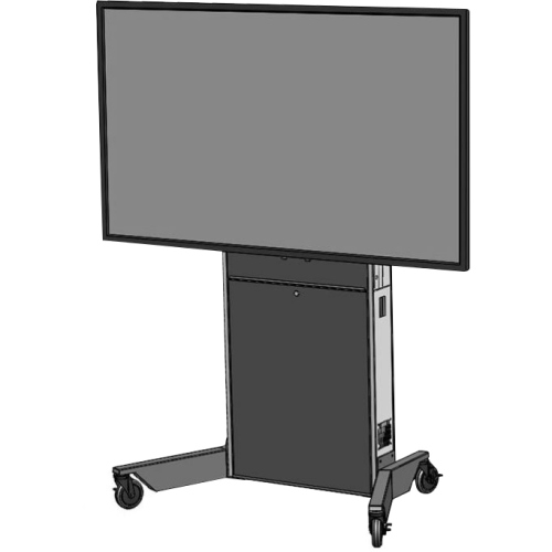 The LFT7000-XL extra large heavy duty mobile lift stand for single XL TV''s and interactive displays. It is a self-supporting wheeled stand. Ideal for environments where adjustable height or ADA is required. Internally it features vertical 3U rack rails behind the bottom locking panel. Cable channel and ventilation. Standard Features Accommodates 65" to 90" monitors (280 lbs max - 1100x650mm VESA max) 20" travel electric Worm-Drive actuator for safety and reliability Cable push-button remote for easy incremental adjustments 5" metal casters with ball bearings, non-marking wheels and dust guards, 2 are locking Removable locking front panels with wiring channel inside main pillar Scratch resistant powder coat finish Grey metal frame with Shark Grey-SGT panel color 3U vertical rack inside