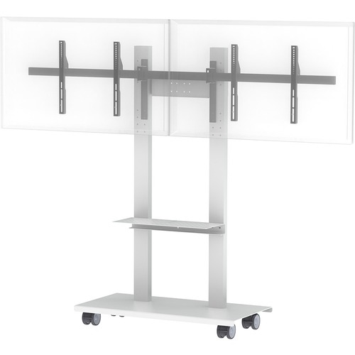 The SYZ80 mobile interactive stand for Single, XL and Dual displays is a solution for a wide range of video conferencing and interactive applications screens with a weight capability of 250 lbs. Its unique modern design plus accessible base shape is ideal for corporate and educational environments. Both columns attached by a brace provide strength and support to the interactive board mounted. These columns feature grommets both on the top and bottom for passing cables inside the unit, leaving it with a very clean controlled appearance. One (1) SYZ5 laptop shelf included.This unit is available in white & black metal. Standard Features Single, XL or Dual displays and Cisco Spark Boards 55 & 70 mount choices VESA pattern 300 x 300mm - 1100 x 650mm max. Maximum display weight cannot exceed 250 lbs Adjustable TV bracket height during setup, 3 height settings and 2 horizontal settings Cable passage in both columns Heavy duty steel weighted base 1x SYZ5 Laptop shelf included, which can be placed in front or rear of the unit, vertical or horizontally Mounting holes on spines to mount accessories 4x Heavy duty twin swivel wheels (2 locking) Accessible base design to allow access to the monitor without tripping over support legs Scratch resistant powder coat finish