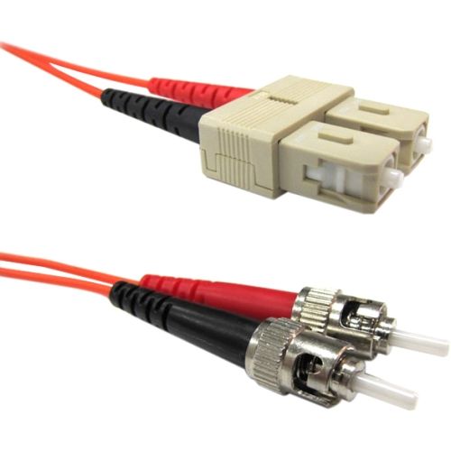 ST to SC terminations, this high-quality fiber optic patch cable is designed for gigabit ethernet applications. The injection molding process provides each connection greater durability in resisting pulls, strains and impacts from cabling installs. The pull-proof jacket design surrounds the fiber, protecting it from electrical interference.