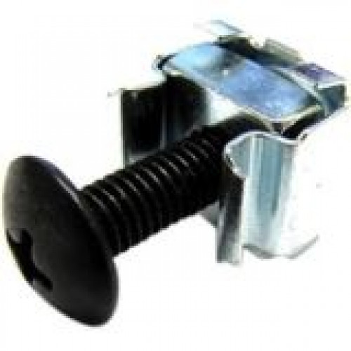 Weltron M6 Cage Nuts and M6 Black Screws - Cage Nut, Rack Screw - Black - 1 Kit