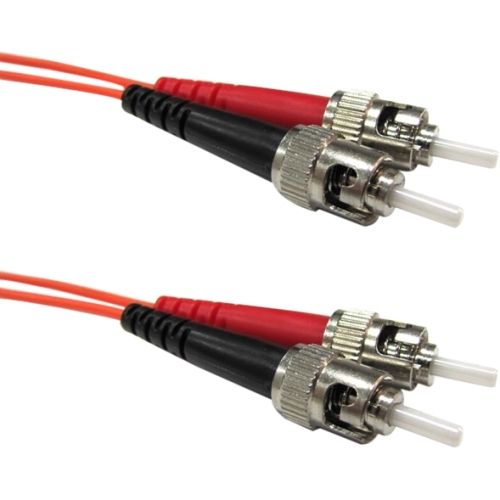 ST to ST terminations, this high-quality fiber optic patch cable is designed for ethernet, multimedia, or communication applications. The injection molding process provides each connection greater durability in resisting pulls, strains and impacts from cabling installs. Each ST connector features a bayonet locking system. The pull-proof jacket design surrounds the fiber, protecting it from electrical interference.