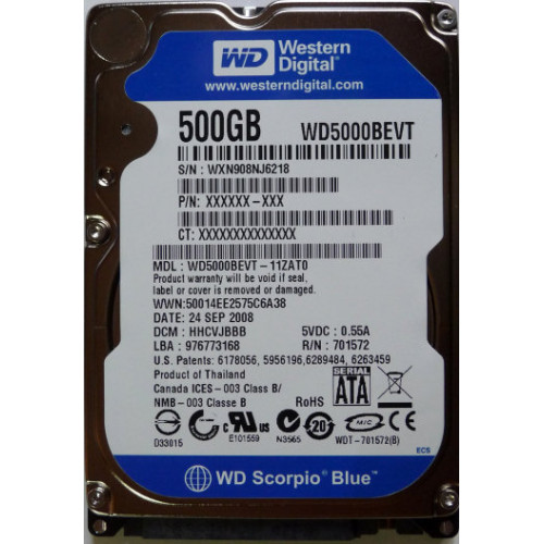 WESTERN DIGITAL Scorpio Blue 500gb 5400rpm Sata-ii 7pin 8mb Buffer 2.5inch Notebook Drives WD5000BEVT