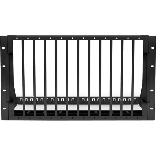 The NHD-000-RACK4 is a 6U rack mount that provides a clean installation for up to 12 NetworkHD 100, 200 and 400 Series encoders or decoders. The NHD-000-CTL NetworkHD controller solution is also compatible allowing for all required devices to be installed in a single location. The slimline and thermally optimized design helps keep your centralized NetworkHD solution perfectly organized.